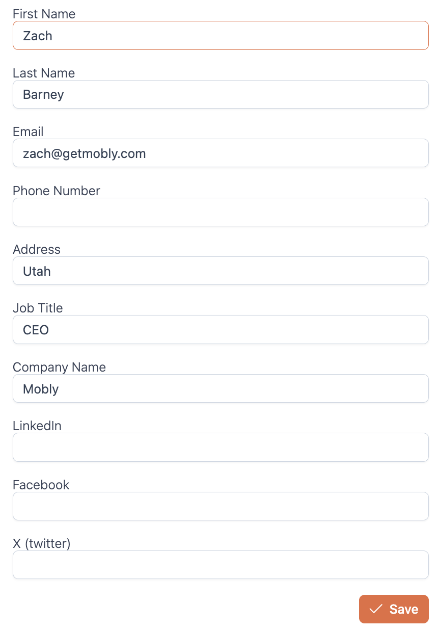 Enter the First Name, Last Name, and Email of the user. These are required fields. You can also add their Phone Number, Address, Job Title, Company Name, LinkedIn, Facebook, and X (twitter) to aid in better user reporting.