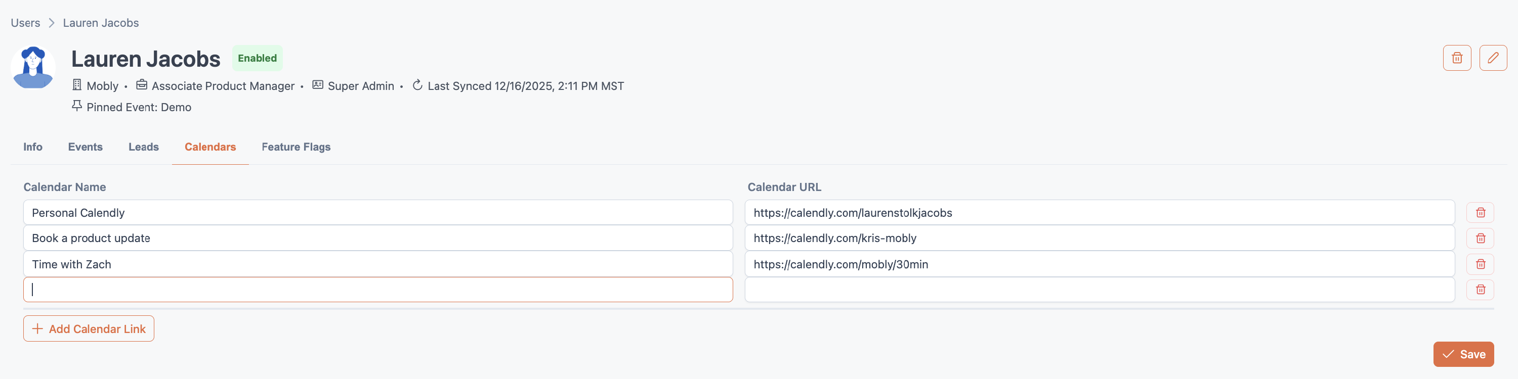 Admins can also set up event-specific calendar links, ensuring that all reps assigned to an event see the correct scheduling options when booking a meeting with a lead in the mobile app.