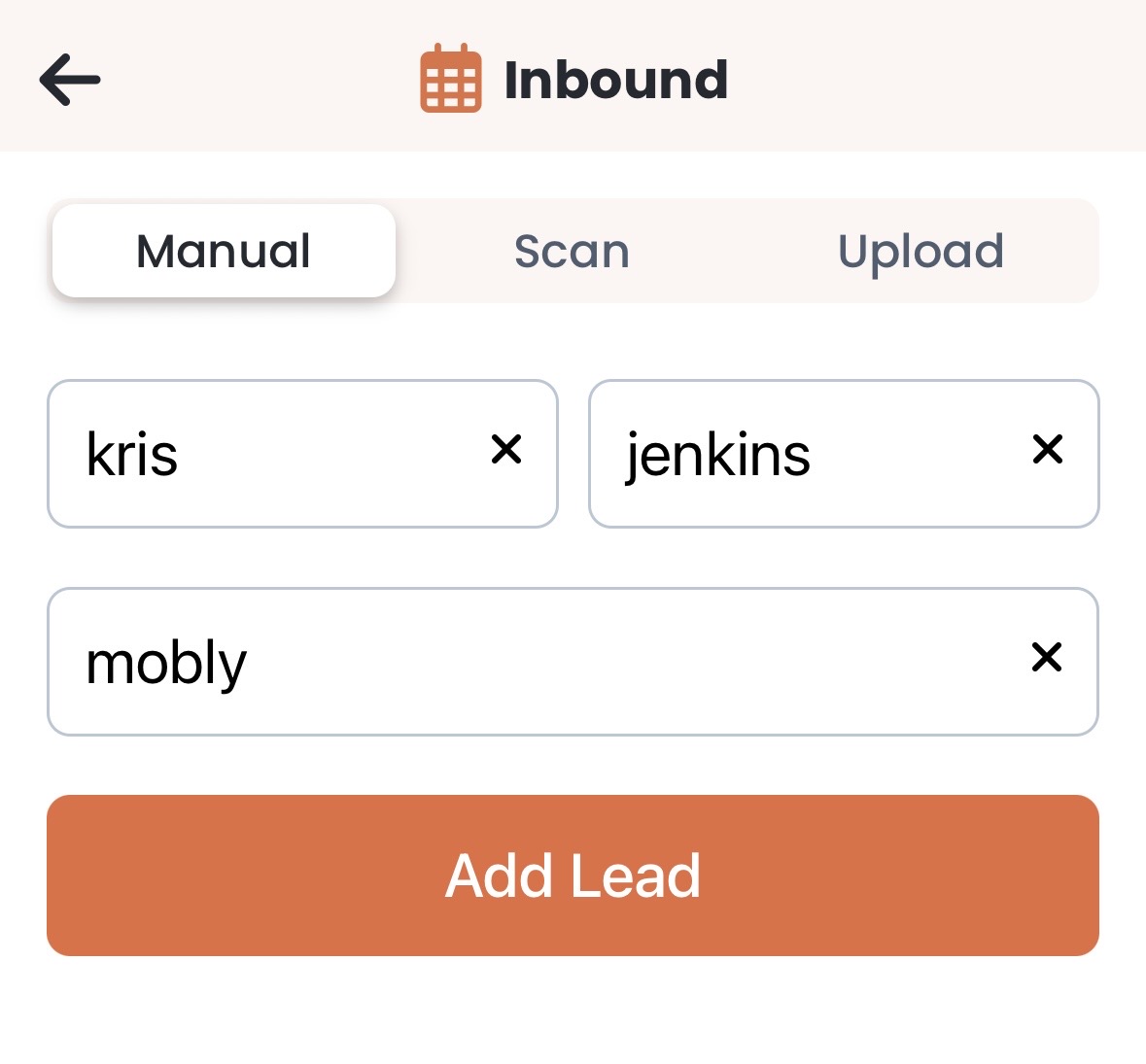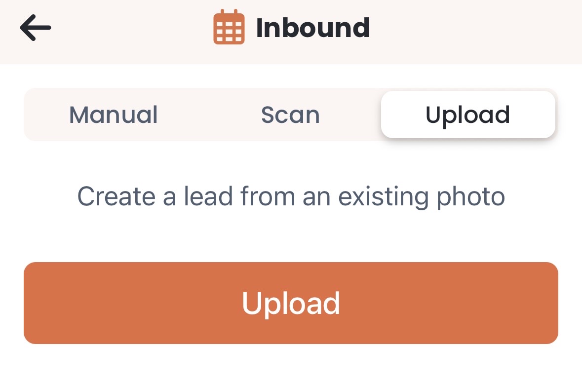 You may be used to scanning a barcode or a QR code of a badge with an old-school badge scanner to capture your leads, but with Mobly, you only need to capture the lead's first name, last name, and company! You can capture leads with three methods: scan, manual, or camera roll upload.
