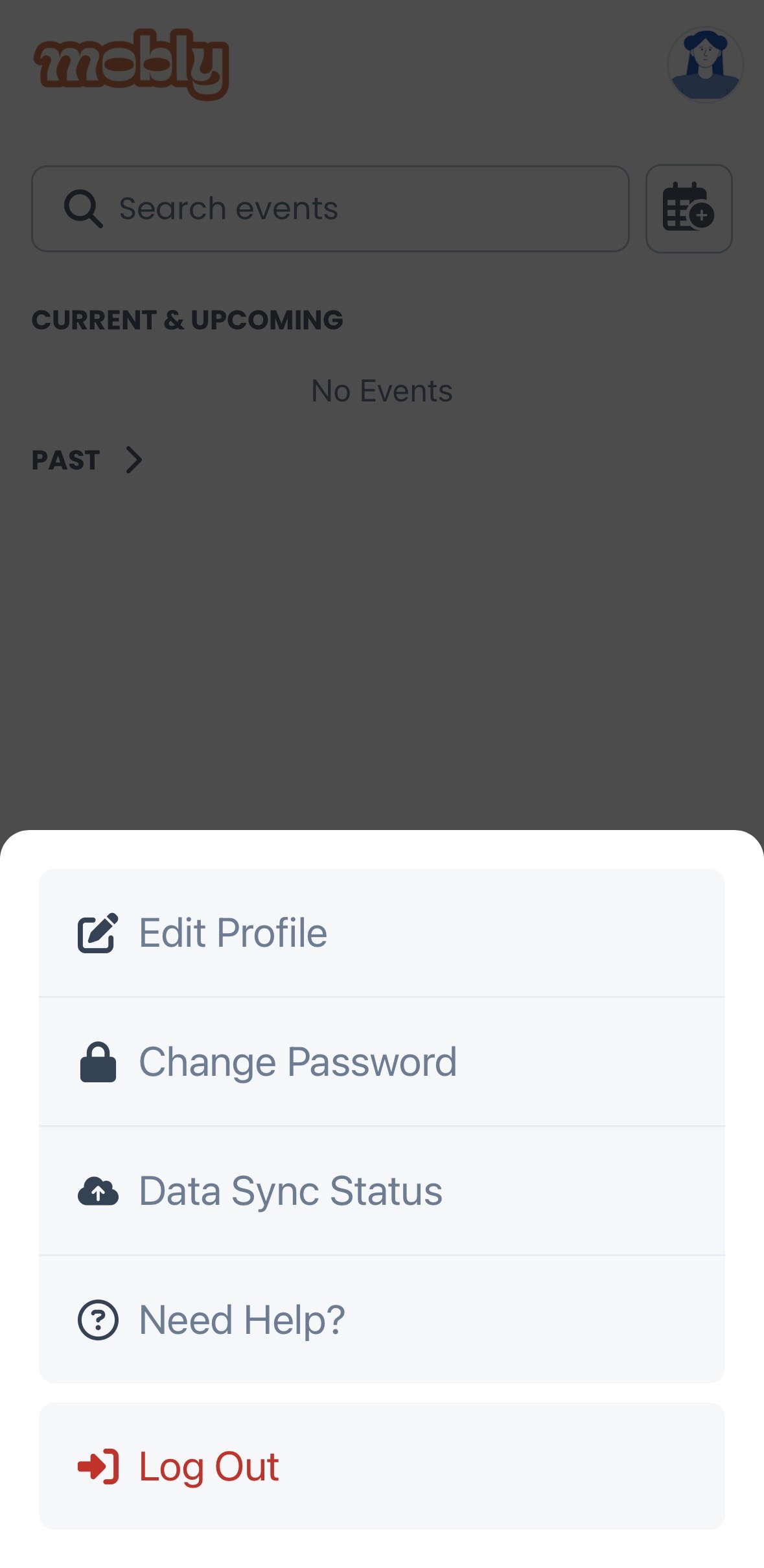 From the "Events" tab of the mobile app, tap on the circle profile picture in the top right corner of the screen. Tap "Edit Profile" from the menu options.