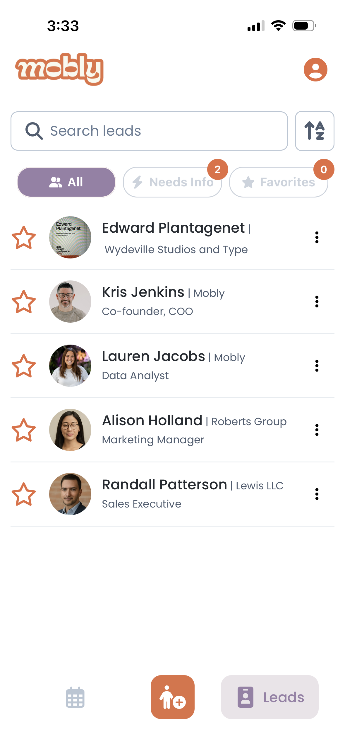 Favoriting allows you to quickly access important leads by marking them with a star. This helps you keep track of high-priority contacts without searching through all your leads.