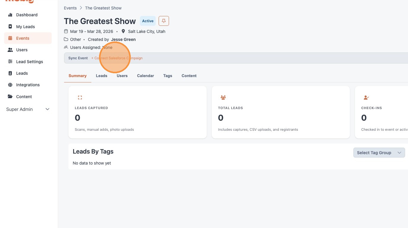 1. From the Mobly Event, click "+ Connect Salesforce Campaign"